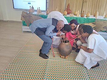 Umuyobozi w’Akarere Wungirije ushinzwe Imibereho Myiza Mme Uwiringira Marie Josee ari kumwe n'abayobozi b'Imirenge ifite ababyeyi mu rugo…