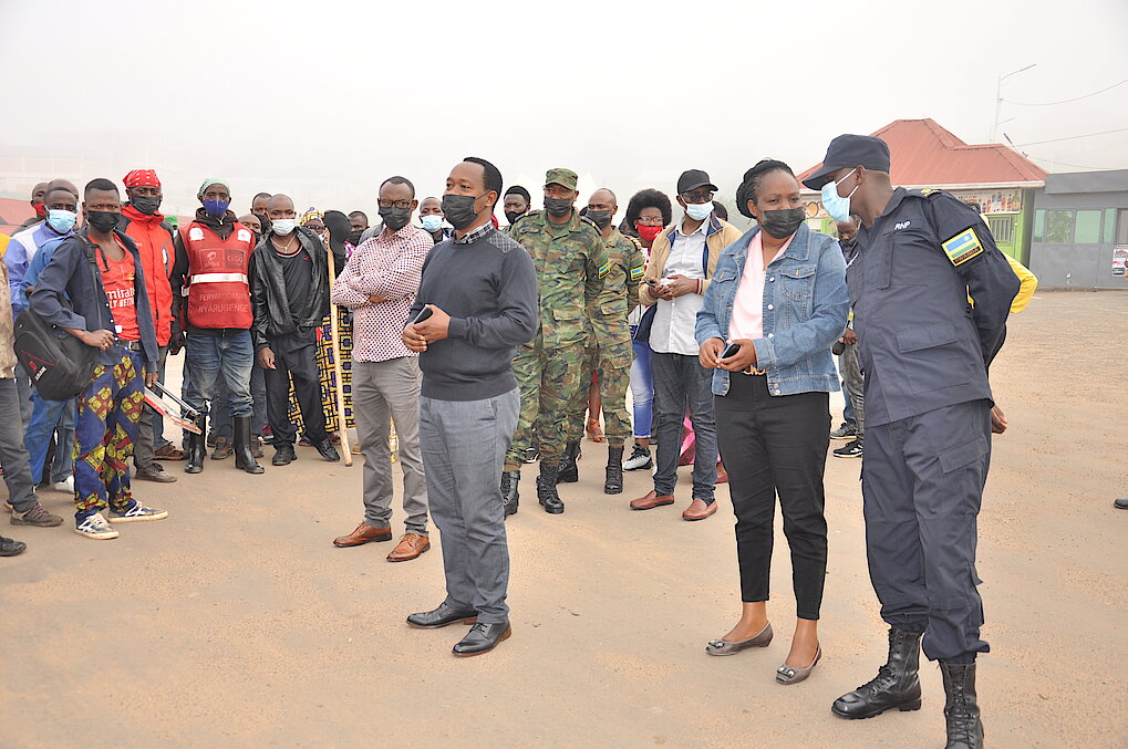 Abo bayobozi begeraga muri buri modoka yayoborwaga n’abapolisi muri gare ya Bishenyi kwita ku mabwiriza y’isuku cyane nk’abagenda mu mihanda arimo kwirinda kujugunya amacupa ndetse n’iyindi myanda aho babonye. Abari muri gare kimwe n’abandi baturage baganirijwe ku bijyanye no kwirinda kujugunya aho babonye imyanda irimo ibikongorwa by’ibisheke.