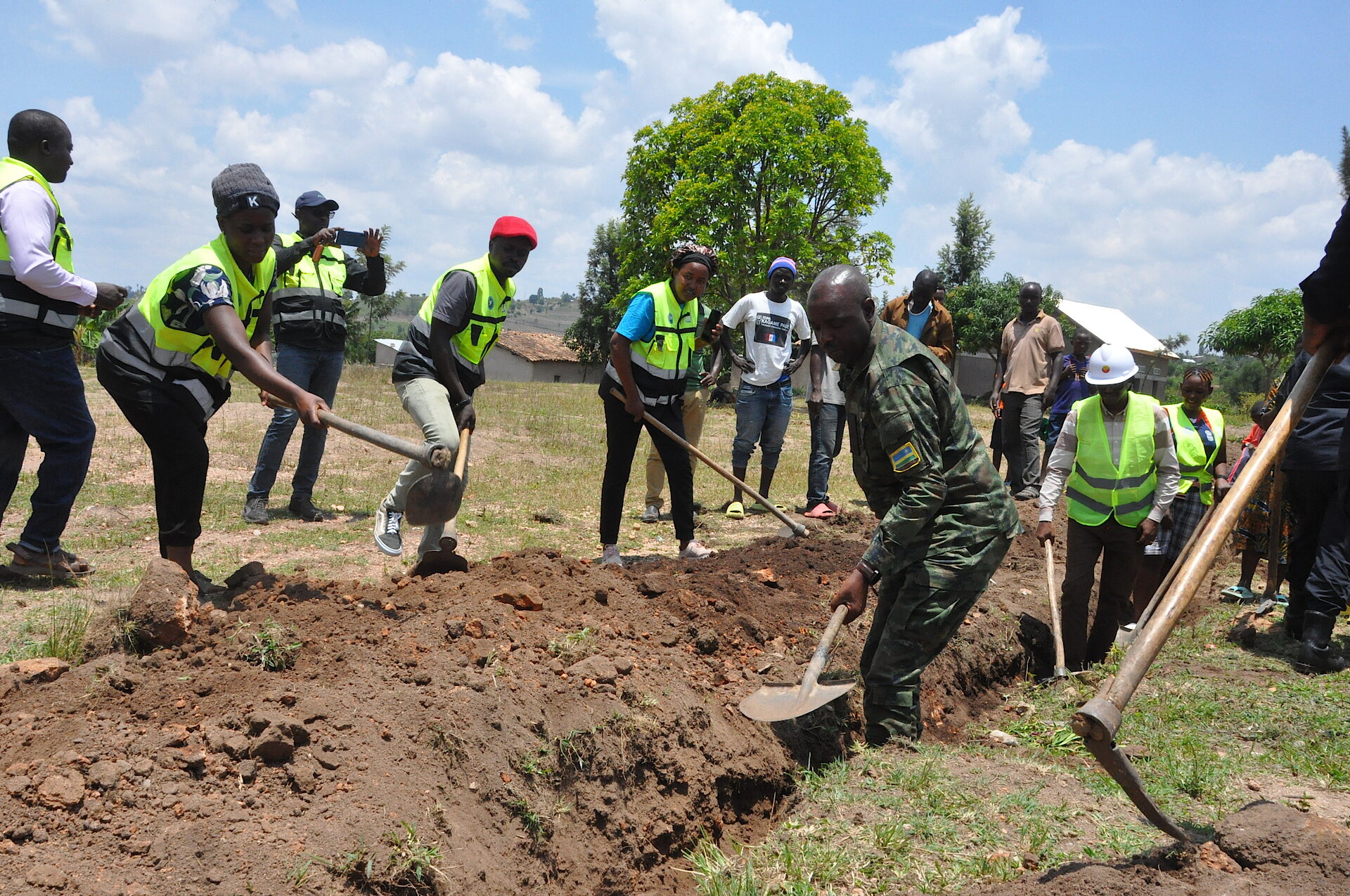 Mu Murenge wa Nyamiyaga uyu munsi hatangirijwe gahunda y'ibikorwa by'ubufatanye bw’Ingabo na Polisi mu iterambere n’imibereho myiza y’abaturage. Igikorwa cyaranzwe n’umuganda wihariye wo gucukura umuyoboro w'amazi no gushyira ibuye ry'ifatizo ahazubakwa ivomero kuri EP Byenene, iki kigo kikaba kitagerwagaho n’amazi meza.