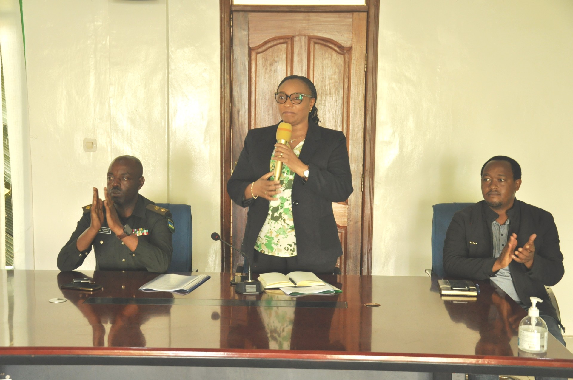 Tariki 31 Mutarama 2025 ari kumwe n'Umuyobozi w'Akarere Dr. Nahayo Sylvere hamwe n'abagize inama y'umutekano itaguye y'Akarere; Dr.Uwamariya Valentine Minisiteri w'Ibidukikije akaba n'imboni y'Akarere ka Kamonyi muri Guverinema y'u Rwanda yasuye ibikorwa by’iterambere mu Mirenge ya Nyamiyaga na Mugina byakozwe mu mushinga Green Amayaga.