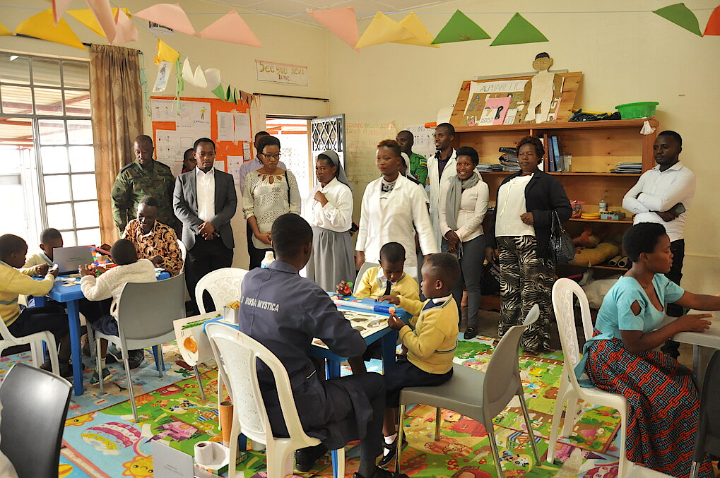 Mu Murenge wa Rukoma, Minisitiri n’itsinda bari kumwe basuye Irerero ryegerejwe Abaturage ryubatse mu Kagari ka Taba (Community Based ECD) mu Kagari ka Taba mu Murenge wa Rukoma mu rwego rwo kwita no gusigasira uburezi n'uburere bw'abana bato no kwita ku mikurire yabo bagaburirwa indyo yuzuye ndetse.