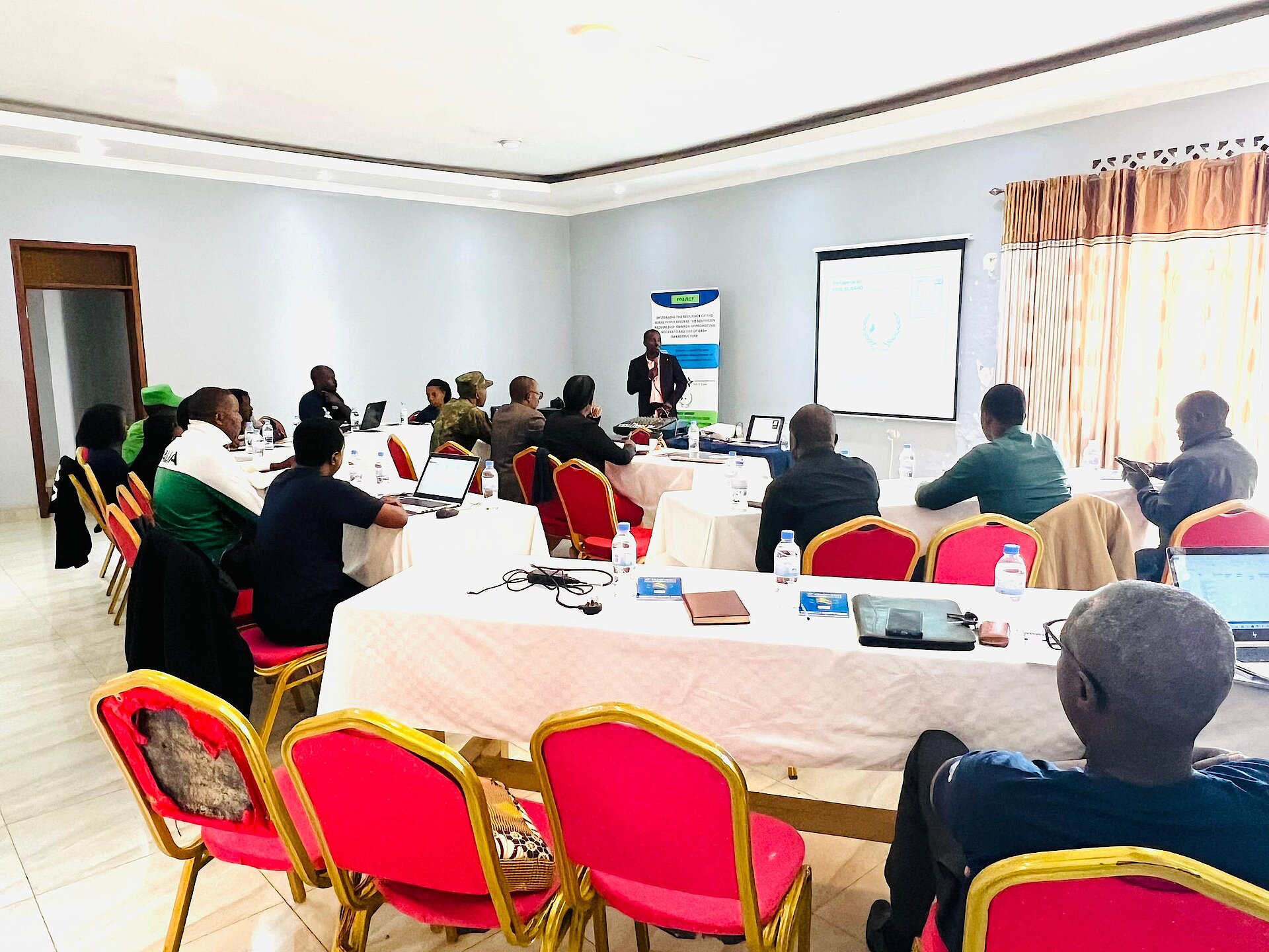 Muri Ganza Motel ihererereye mu Kagari ka Nkingo mu Murenge wa Gacurabwenge habereye amahugurwa yatanzwe na Minisiteri y’Ibikorwaremezo (MININFRA ) ku bufatanye n'umufatanyabikorwa ARDE/Kubaho hagamijwe kunoza serivisi z'amazi isuku n'isukura.